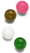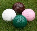 Along with mallets, croquet balls are the most important part of a croquet set. Get it right, and you will be able to really feel the shot, and appreciate fully the right "knock" as one ball hits another. The important thing to look for in a croquet ball is that it is of regulation size and weight (a regulation croquet ball must be 3 5/8" diameter, and weigh 16 ounces), as a ball that is too light or too small will not behave in the way it should do. Finding regulation size & weight balls is actually not as easy as you might think, and if you do find them, they are usually quite highly priced - until now that is. Our replacement balls are made from a tough composite material and will provide years of good service. We offer so-called primary colours (Red, Blue, Black & yellow), as well as the secondary colours (Pink, Brown, White & Green). We sell individual balls, or as sets of primary or secondary colours.
