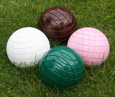 Set of 4 regulation size painted wood secondary colour croquet balls (Pink, Brown, White & Green). Adding this set to the standard primary colour balls gives you eight balls in total, so up to 8 people can play at the same time. Or, up to 4 players can play using 2 balls each.