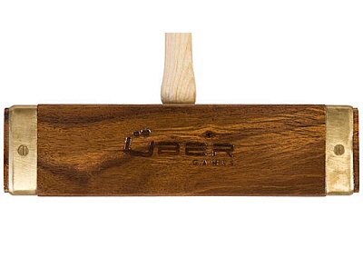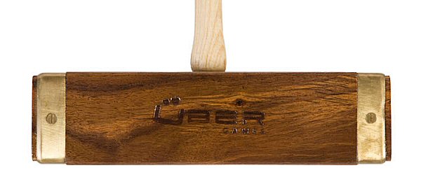 Championship Croquet Mallet from Uber with 38-inch Octagonal English Ash handle, 9.5” x 2 ¼” Rosewood Square Head, Natural finish, Leather grip, Approximate weight 3lbs.