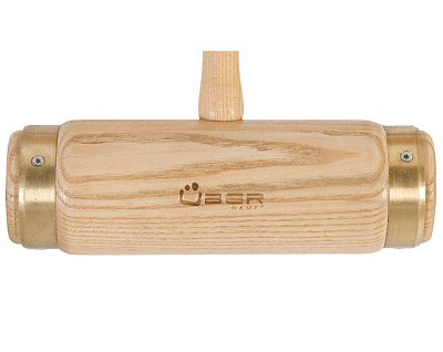 Executive Croquet Mallet from Uber with 38” Octagonal English Ash handle, 9.5” x 3” English Ash Head with protective brass rings, Natural finish, Leather grip, Approximate weight 3lbs.