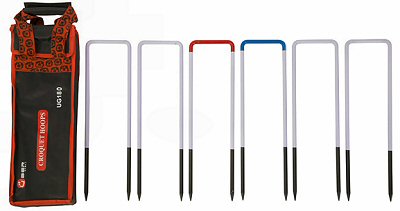 With a 4" gap suitable for all croquet ball sizes, our excellent value 17.5" high steel croquet hoops are as supplied in our Uber Garden, Pro and Junior Executive Croquet Sets. They are designed to leave the regulation 12" height above ground when sunk into the lawn. Supplied with a Canvas transport / storage bag.